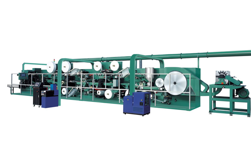 Es una máquina especial para producir pañales absorbentes para bebés. La función de protectores absorbentes es similar a la de los pañales normales. En todo caso los protectors absorbents son más económicos que los pañales normales. Las partes principales de los pañales absorbentes son los de pulpa de lanilla, superficie SAP, superficie no tejida, film en el trasero y unidad de brazaletes en las piernas. La estructura de los pañales absorbentes es bastante simple y el coste es mucho menor Además, la máquina para fabricar protectores absorbentes es facil de operar.Nuestra empresa como productor de pañales para bebés en China, producimos diversos tamaños de protectores absorbentes para bebés (pequeños, medianos y grandes) mediante la sustitución de algunas piezas. El sistema de transmisión consta de eje rígido, caja de engranajes, engranaje de espiral 45 º y empalme universal. Cada unidad de trabajo minimiza la escasez de sistema con el fin de hacer más suave la transmisión del engranaje. La banda transportadora está integrada con estructura de marco para mantener la cinta en línea con los productos.Todos las partes tienen dispositivos de diferencial para la fase de ajuste durante la operación. Los productos pueden ser plegados en tres y apiladas en la línea de salida.